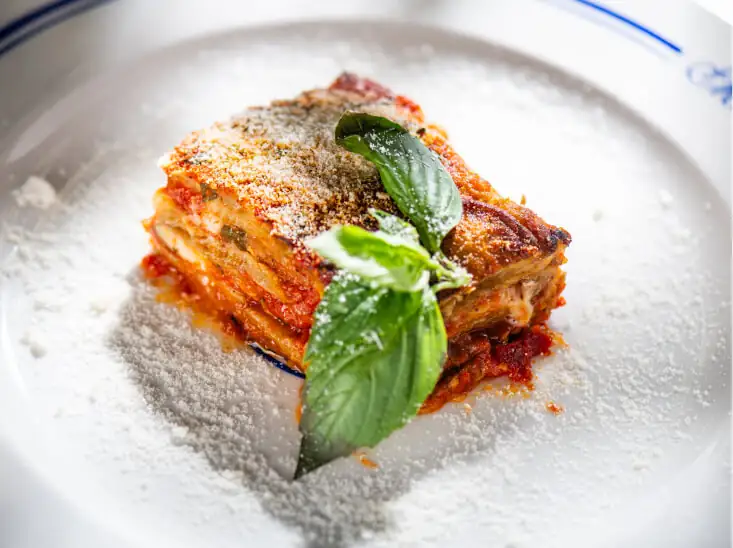 bakłażan / parmezan / sos pomidorowy / bazylia / mozzarella