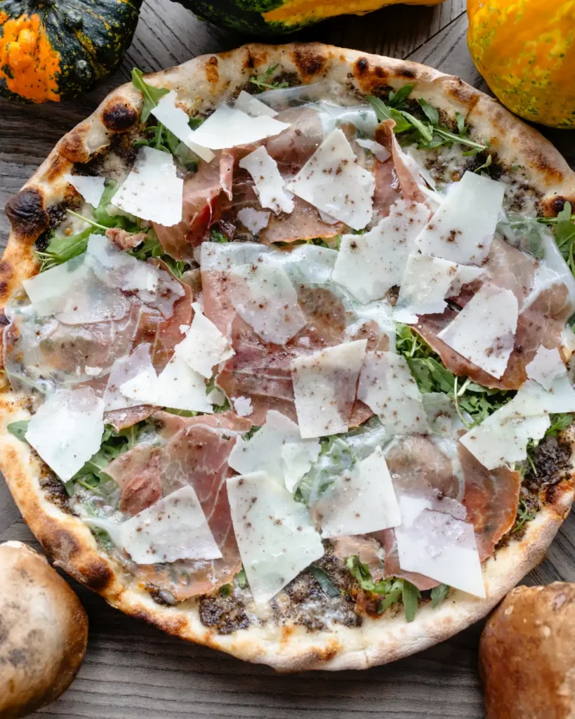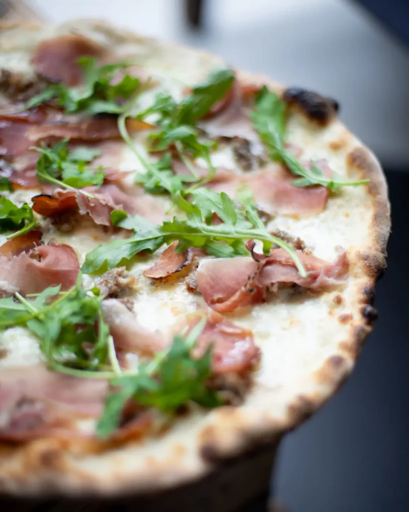 mozarella di bufala campana d.o.p. / fior di latte / pasta truflowa / rukola / culatello d.o.p – serce szynki parmeńskiej / oliwa tenute fierro