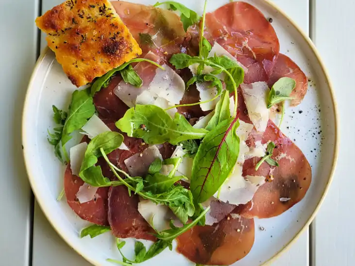 szynka wołowa / rukola / kapary / parmezan / balsamico / sos musztardowo – miodowy