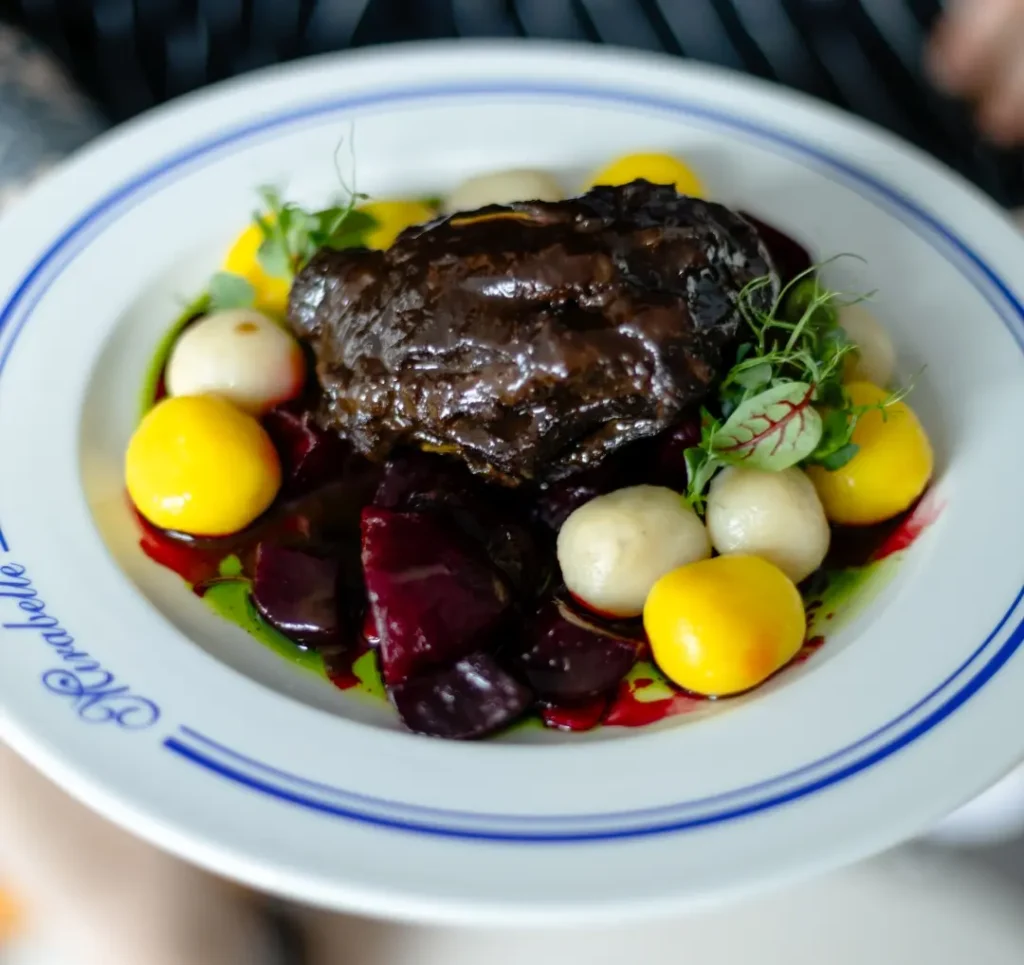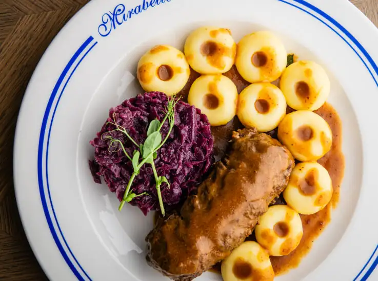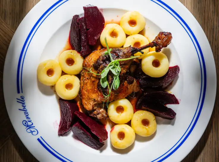 konfitowane udko z kaczki / kluski śląskie / buraczki