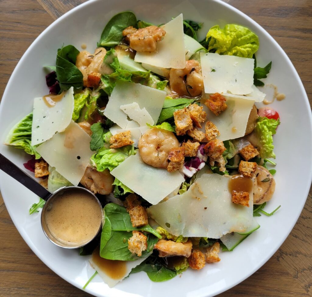 pomidorki koktajlowe / ogórek / krewetki / boczek / parmezan / sos z anchois