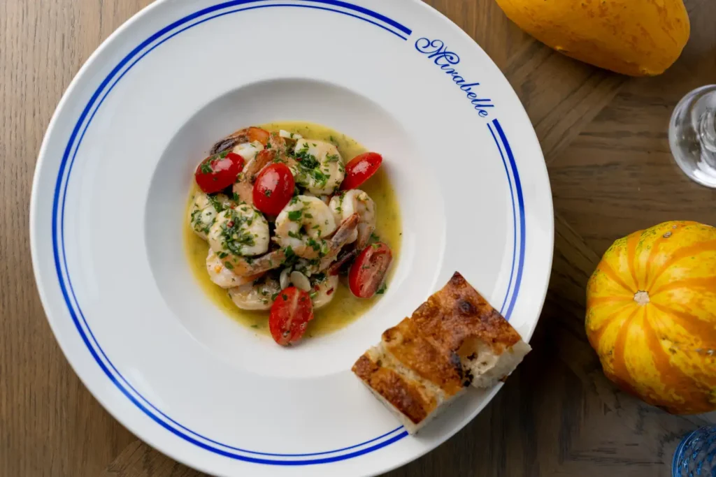 krewetki / czosnek / wino / oliwa / masło / pietruszka